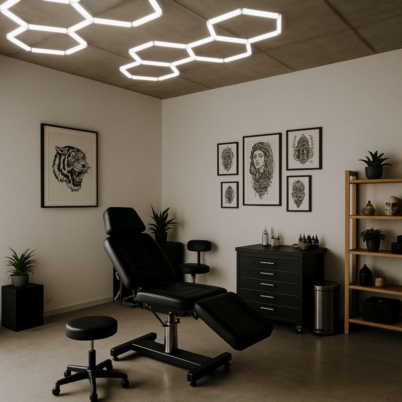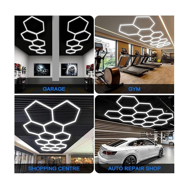 - Conception modulaire : chaque luminaire s'emboîte parfaitement pour former des structures hexagonales ou des compositions personnalisées, ce qui facilite la création de designs uniques, modernes et visuellement frappants.