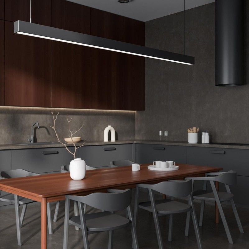 Luminaire linéaire LED de 60W au design moderne, conçu pour une installation suspendue ou en saillie.