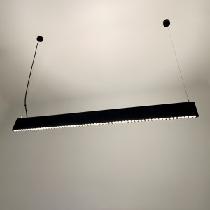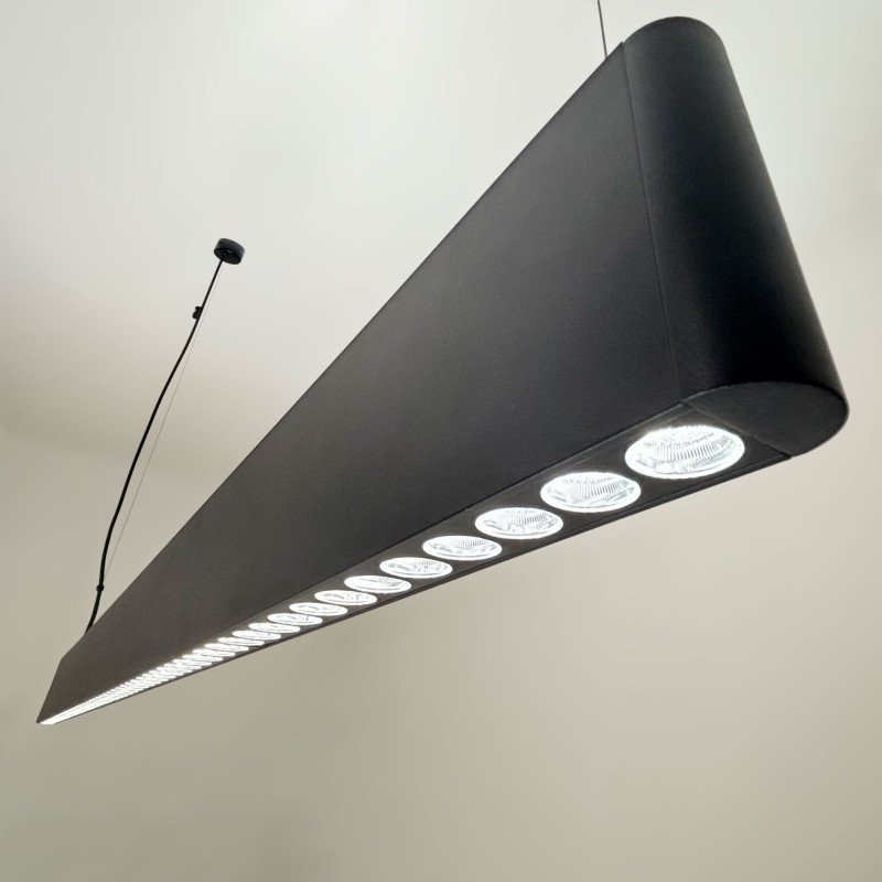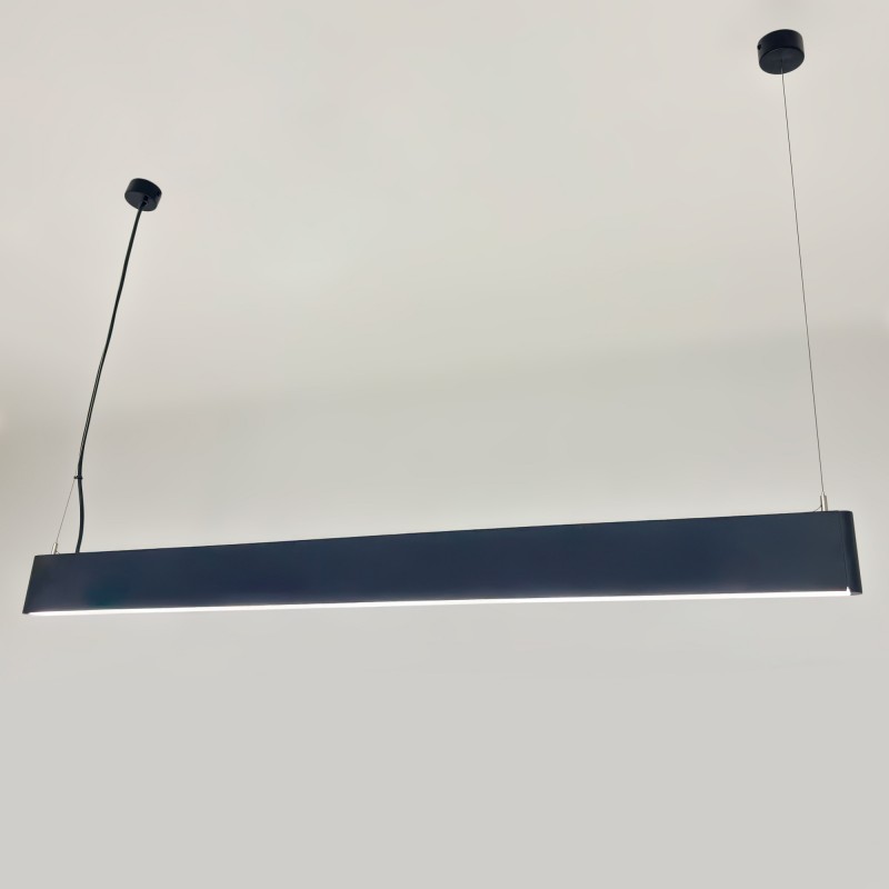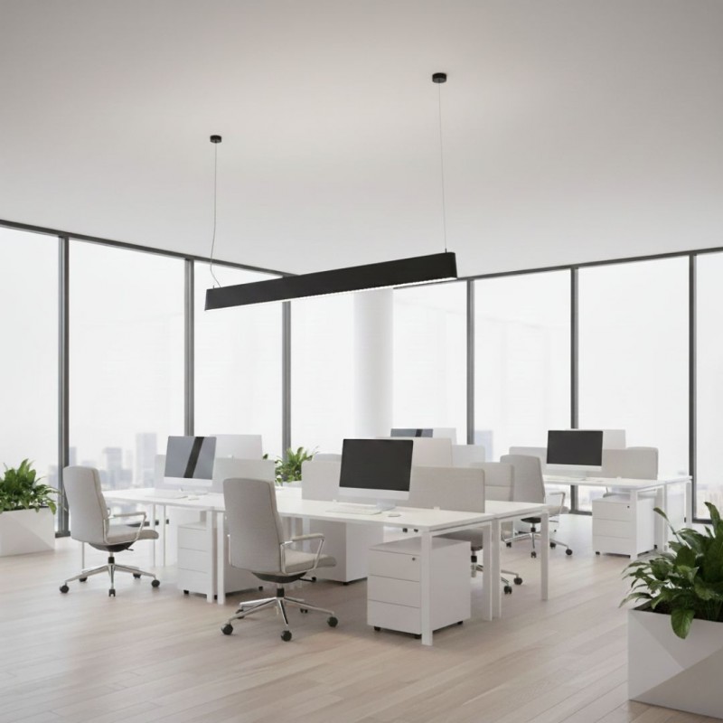 Luminaire linéaire bidirectionnel à LED pour installation suspendue, idéal pour les bureaux, les magasins et les espaces de travail qui requièrent un éclairage professionnel, efficace et d'un grand confort visuel.