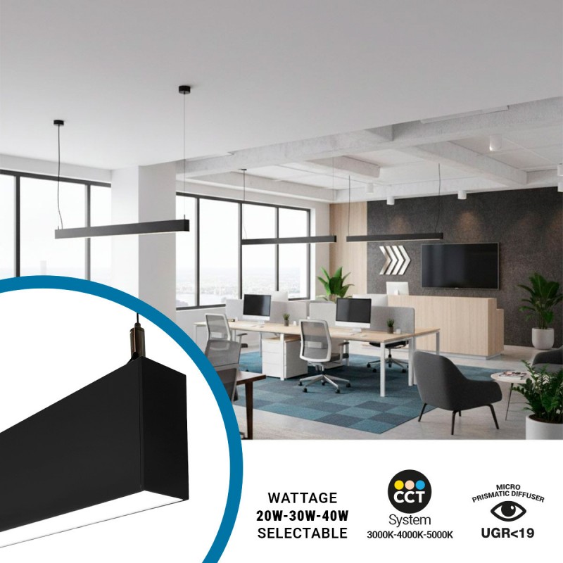 Luminaire linéaire LED CCT - Bidirectionnel - Suspension - Puissance réglable 20W/30W/40W - 120cm - UGR 19