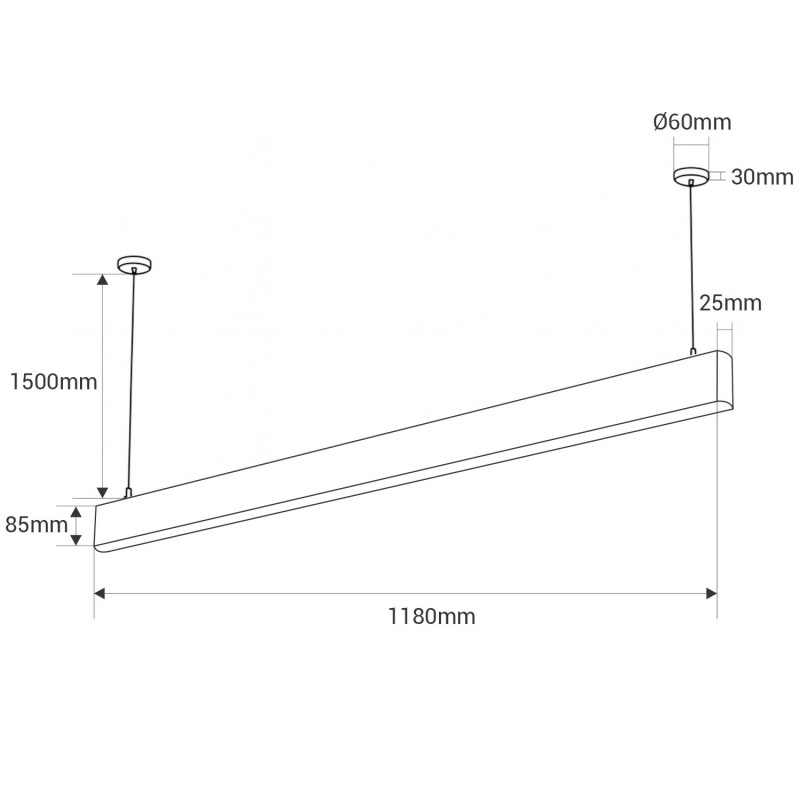 Luminaire linéaire à LED au design moderne pour installation suspendue, idéal pour les bureaux, les magasins et les espaces de travail qui requièrent un éclairage professionnel, efficace et d'un grand confort visuel.