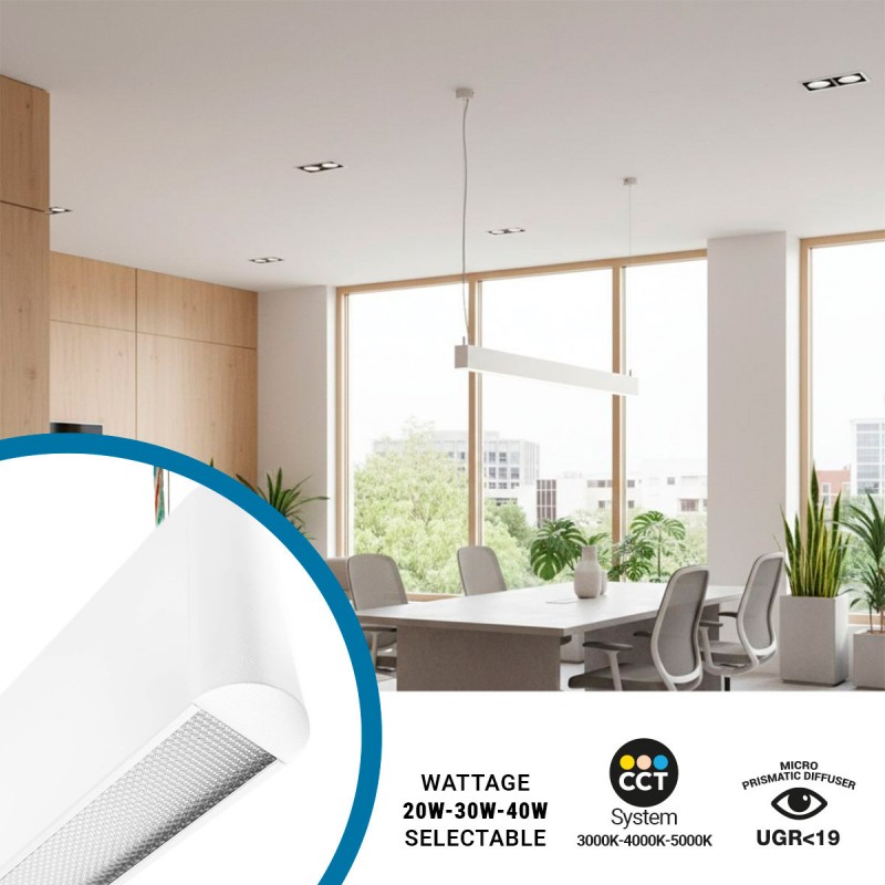 Luminaire linéaire LED CCT - Suspension - Puissance réglable 20W/30W/40W - 120cm - UGR 19