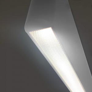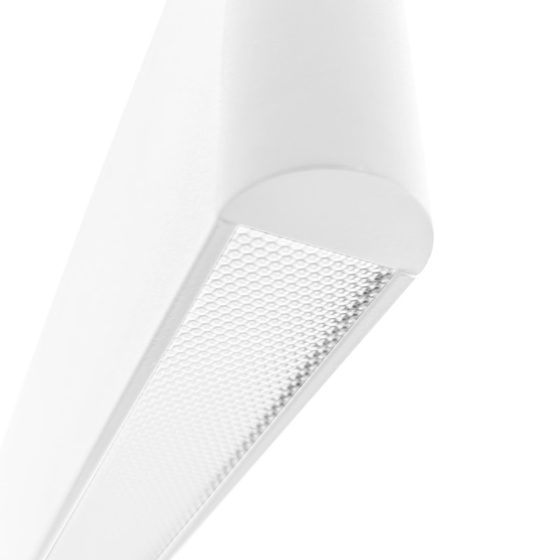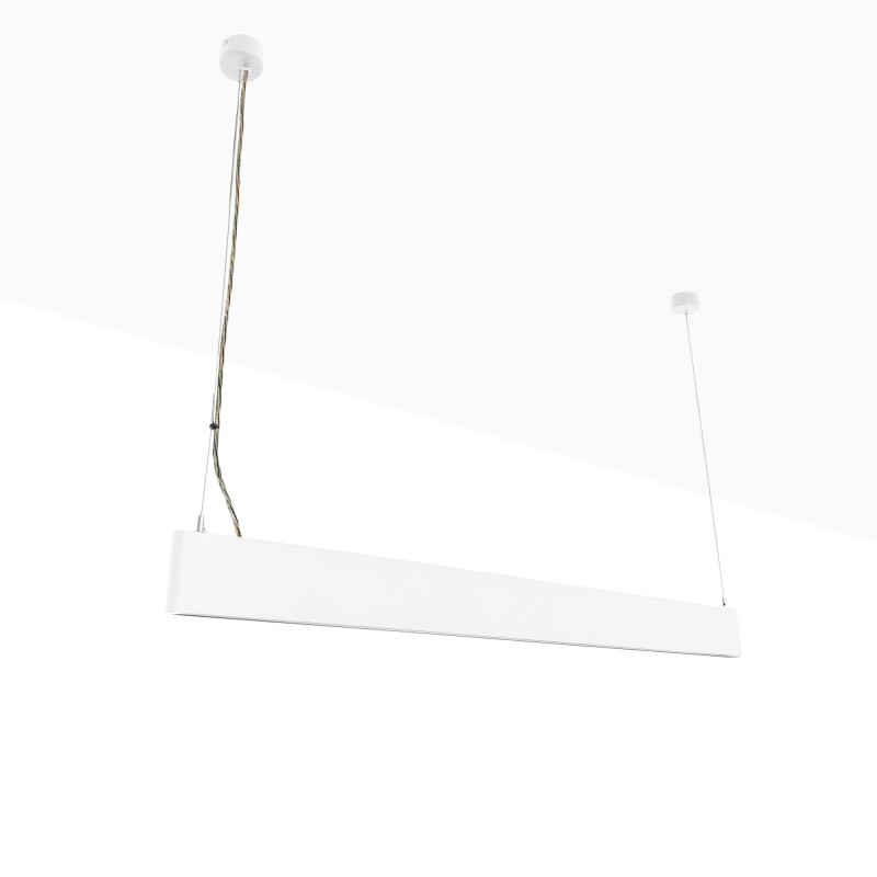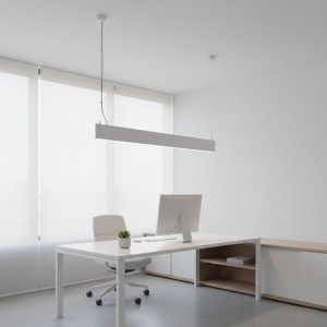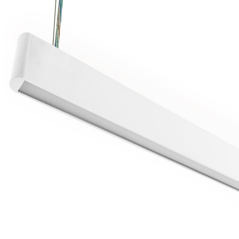 Luminaire linéaire à LED au design moderne pour installation suspendue, idéal pour les bureaux, les magasins et les espaces de travail qui requièrent un éclairage professionnel, efficace et d'un grand confort visuel.