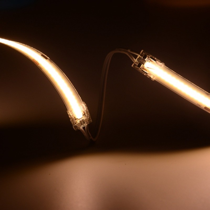 Ce connecteur à connexion rapide est une nouvelle solution pour les bandes de LED à haute densité et à éclairage linéaire et chaleureux, les bandes COB. Cette innovation permet de se débarrasser de la zone d'ombre causée par le connecteur classique entre deux bandes de LED haute densité et offre aux professionnels de l'éclairage et aux particuliers un design dernier cri pour obtenir un effet d'éclairage optimal.
