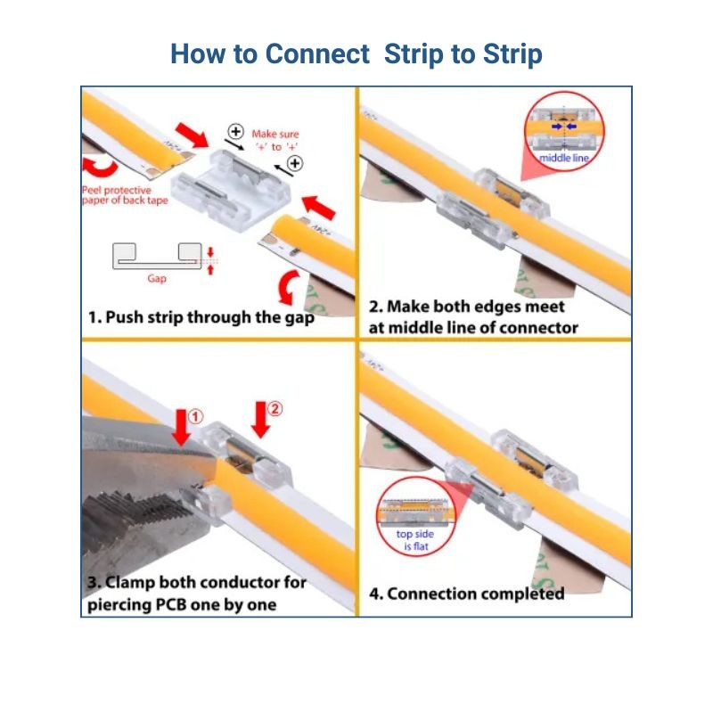 - Connexion efficace : connexion rapide entre deux longueurs de ruban LED COB.