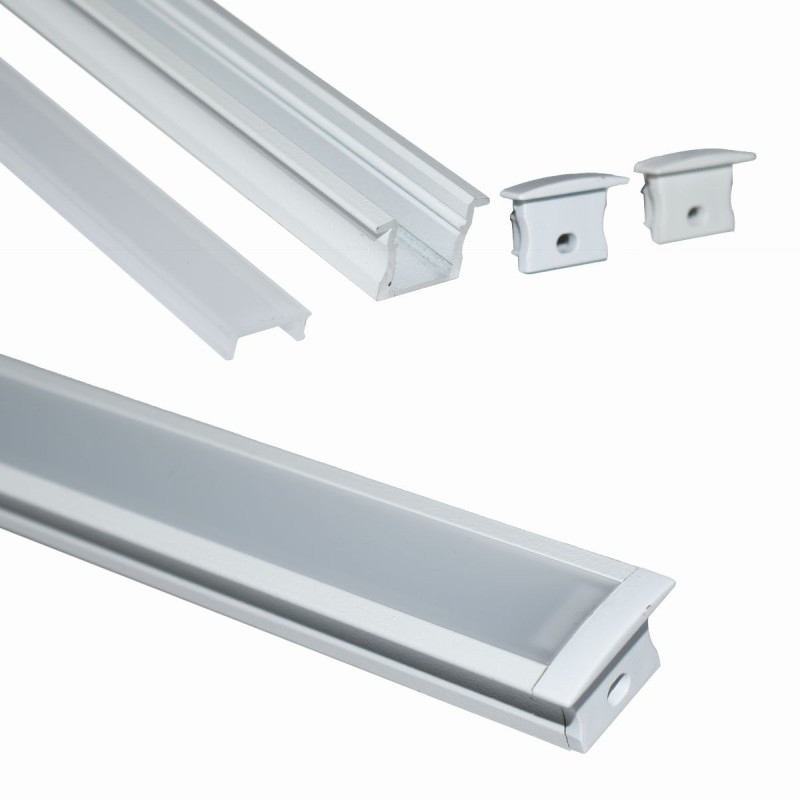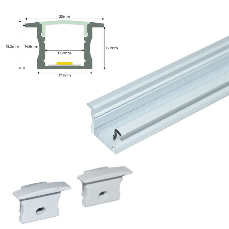 Profilé encastré en aluminium pour bande LED avec diffuseur - 23x15mm - 2 embouts - 2 mètres