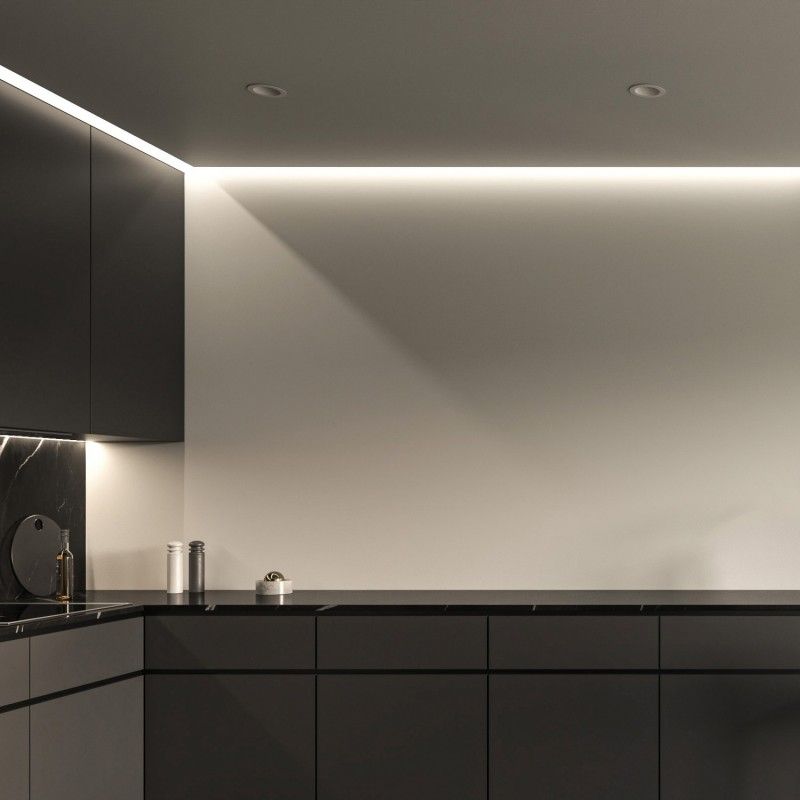 Offre un éclairage homogène sous un angle de 45° et permet l'installation de rubans LED ≤ 10 mm.