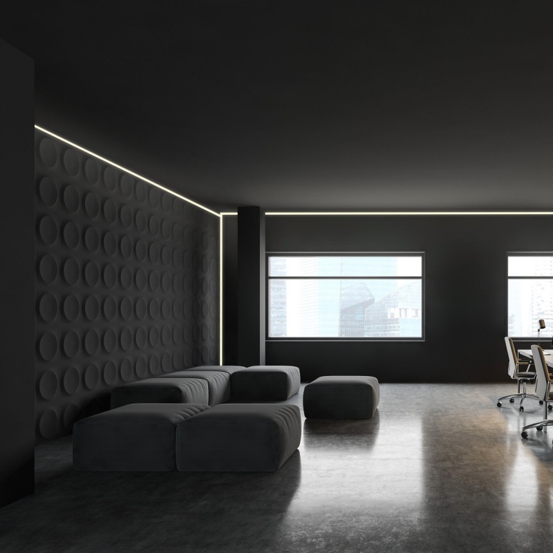 Profilé d'angle en aluminium avec diffuseur. Illumination à un angle de 45°.