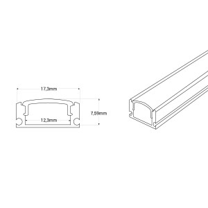 Convient aux rubans LED jusqu'à 12 mm. Dimensions du profil : 17x8 mm et longueur de 2 mètres.