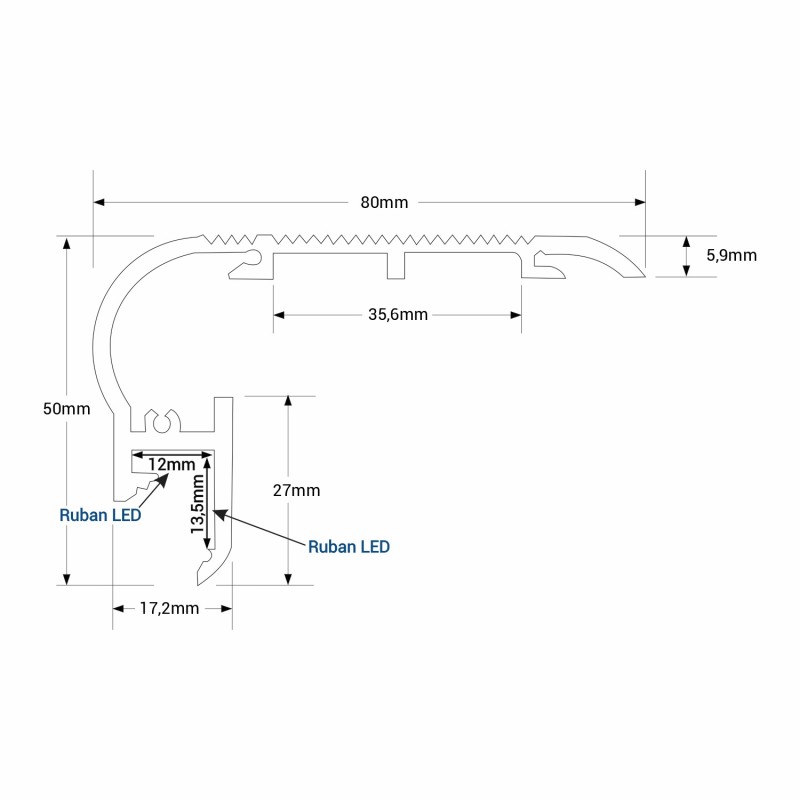 - Dimensions : Profilé de 80 x 50 x 12 mm et longueur de 2 mètres.