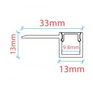 Profilé LED d'intégration / sans bordure - Une ailette - 10x13mm - Avec diffuseur - 2 mètres