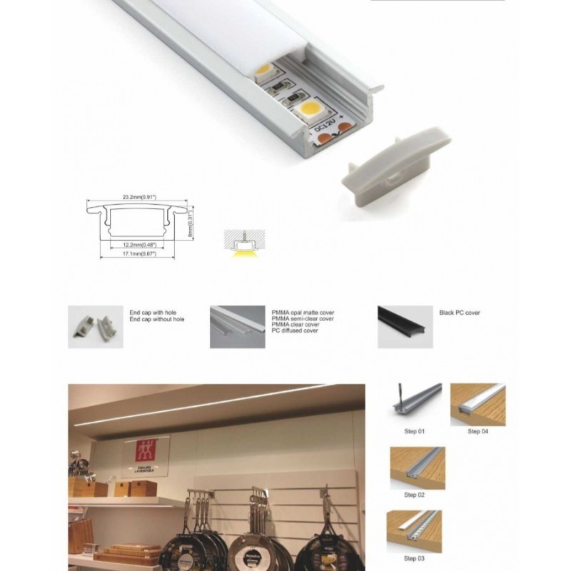 Profilé en aluminium encastrable 23x8 mm pour ruban LED