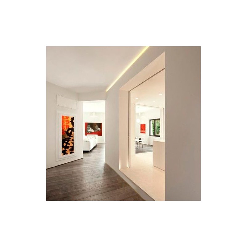 Le profilé que nous proposons est un accessoire de 2 m de long et peut être coupé à la longueur souhaitée pour s'adapter au mur ou au plafond. Un ruban LED (non inclus) est installé dans son intérieur pour éclairer et mettre en valeur des murs, des plafonds, etc. Au-dessus du profilé se trouve une protection en plastique servant de diffuseur. Fabriqué en aluminium de haute qualité pour une plus grande solidité et pour résister à des températures élevées. Son installation est simple et s'effectue au moyen de vis qui maintiennent le profilé au mur. Ce produit est idéal pour les musées, les galeries d'art, mais il sert aussi parfaitement à illuminer nos pièces et à créer une ambiance minimaliste et moderne. Indice intérieur IP20 .