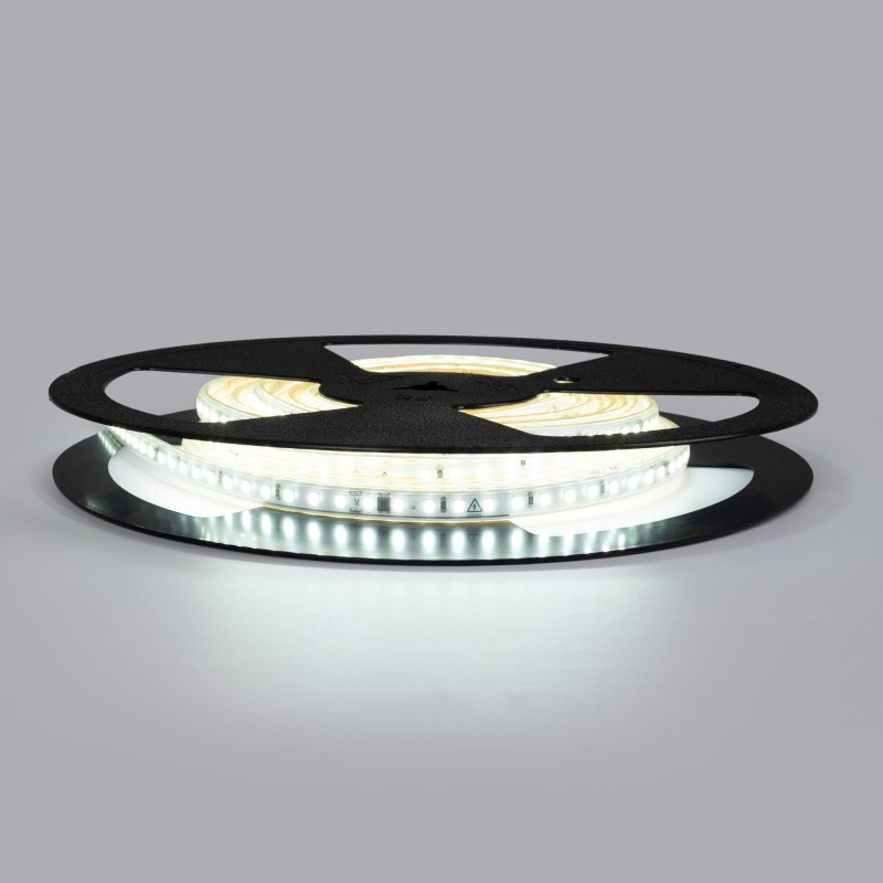 La bande LED unicolore 220V a une puissance de 8W/m et se présente sous la forme d'un rouleau de 10 mètres.