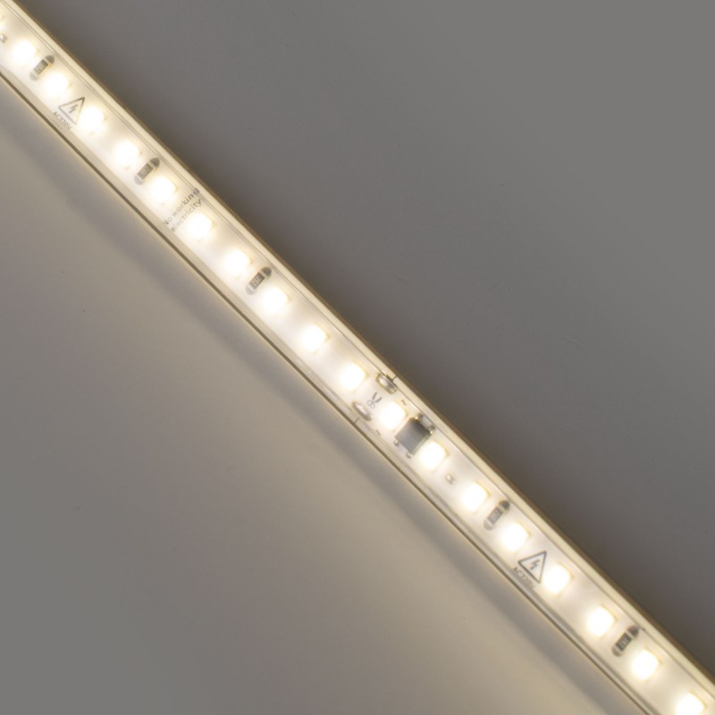 - Haute luminosité : elle intègre des puces LED SMD2835 d'une densité de 120 puces/m, qui garantissent un éclairage lumineux et homogène. Sa puissance est de 8 W/m.