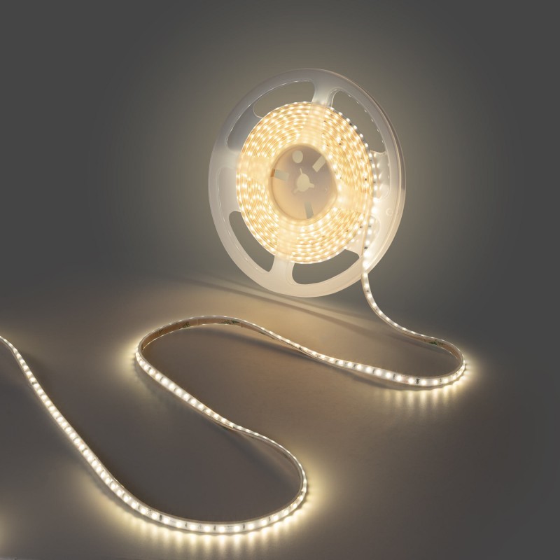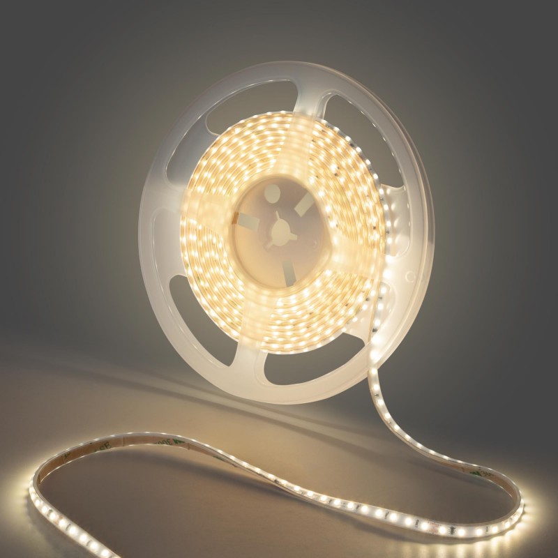 • Haute luminosité : elle intègre des puces LED SMD2835 d'une densité de 120 puces/m, qui garantissent un éclairage lumineux et homogène. Avec une puissance de 8 W/m et une efficacité de 95 lm/W, cette bande LED est non seulement puissante mais aussi économe en énergie.