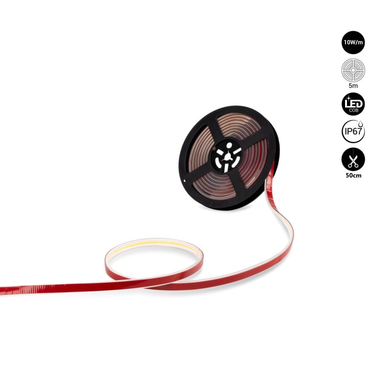 Ruban LED COB 220V AC - 10W/m - IP67 - Rouleau de 5 mètres - Sécable tous les 1m