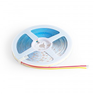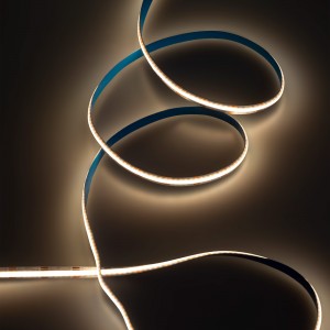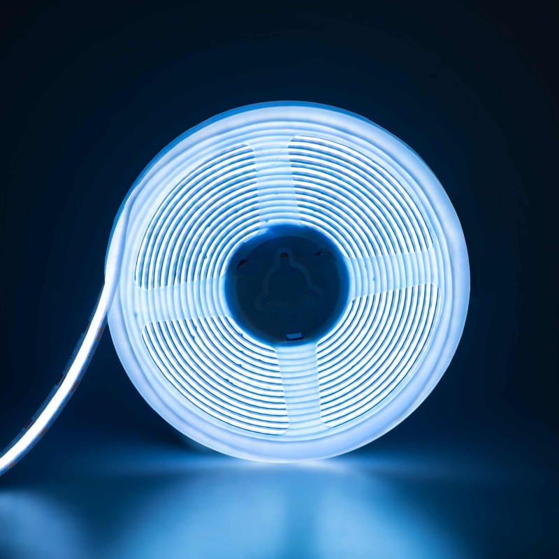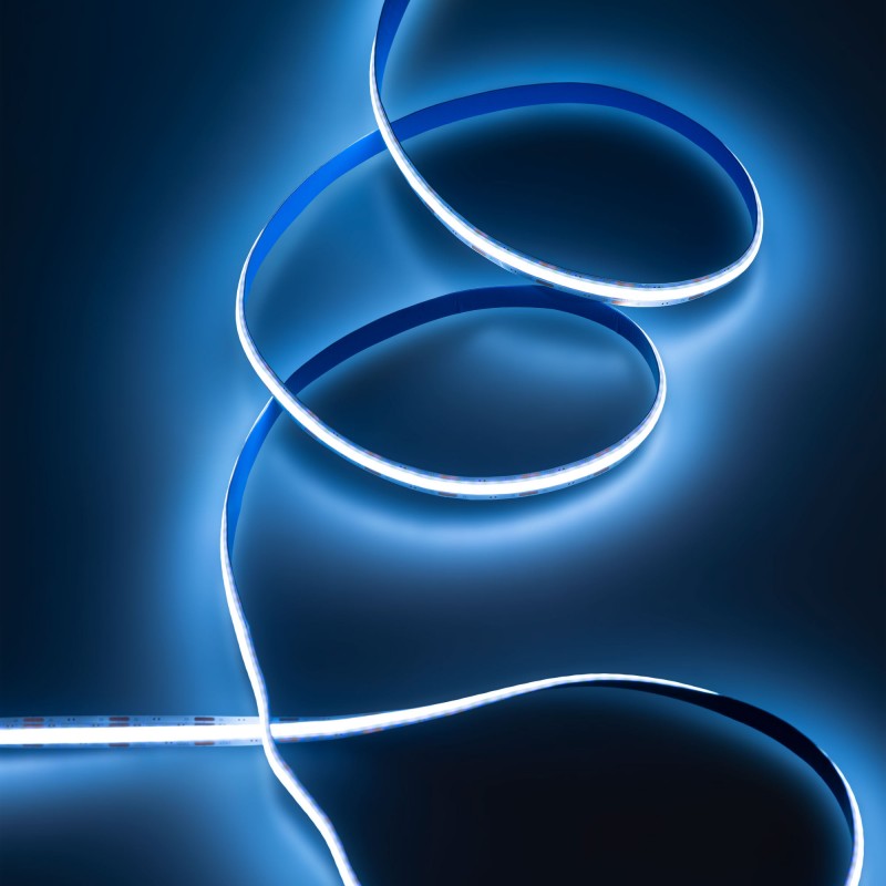 Ce ruban LED intègre la technologie COB, lui permettant d’émettre une lumière continue, sans points visibles. Il est particulièrement recommandé lorsque l’on recherche un éclairage homogène, pour travailler avec des surfaces réfléchissantes ou utiliser des diffuseurs transparents.