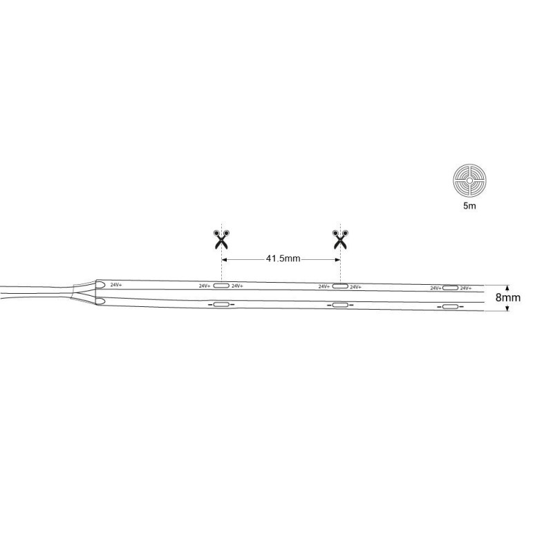 Ruban LED COB Dual white - 24V DC - 14W/m - 8mm - 600 LED/m - IP20 - 5 mètres
