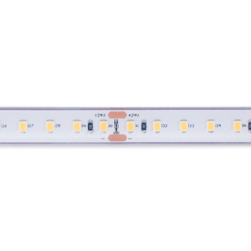 - Haute luminosité : Incorpore des puces LED SMD2835 avec une densité de 120 puces par mètre, garantissant un éclairage lumineux et homogène. Avec une puissance de sortie de 9,6W par mètre et une efficacité de 100 lm/W, cette bande LED est non seulement puissante mais aussi économe en énergie.