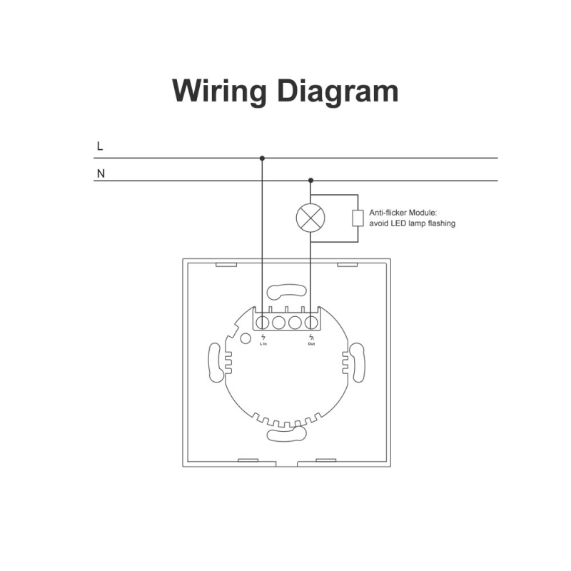 L'interrupteur SONOFF TOUCH admet une charge de jusqu'à 400W / 2A. Il s'encastre facilement dans un boîtier standard EU/86, et requiert un câblage simple tel qu'illustré par le schéma ci-dessous. Notre service client et nos techniciens sont à votre entière disposition en cas de doute concernant l'installation, le câblage ou la configuration de l'appareil.