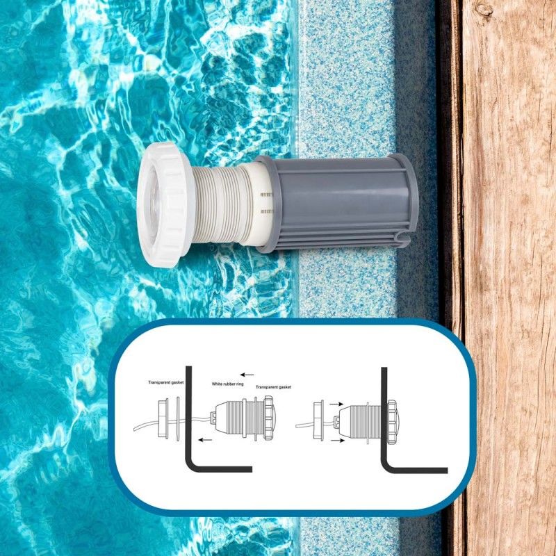 Illuminez votre piscine efficacement et en toute sécurité, en choisissant une lumière blanche ou des effets de couleur personnalisés.