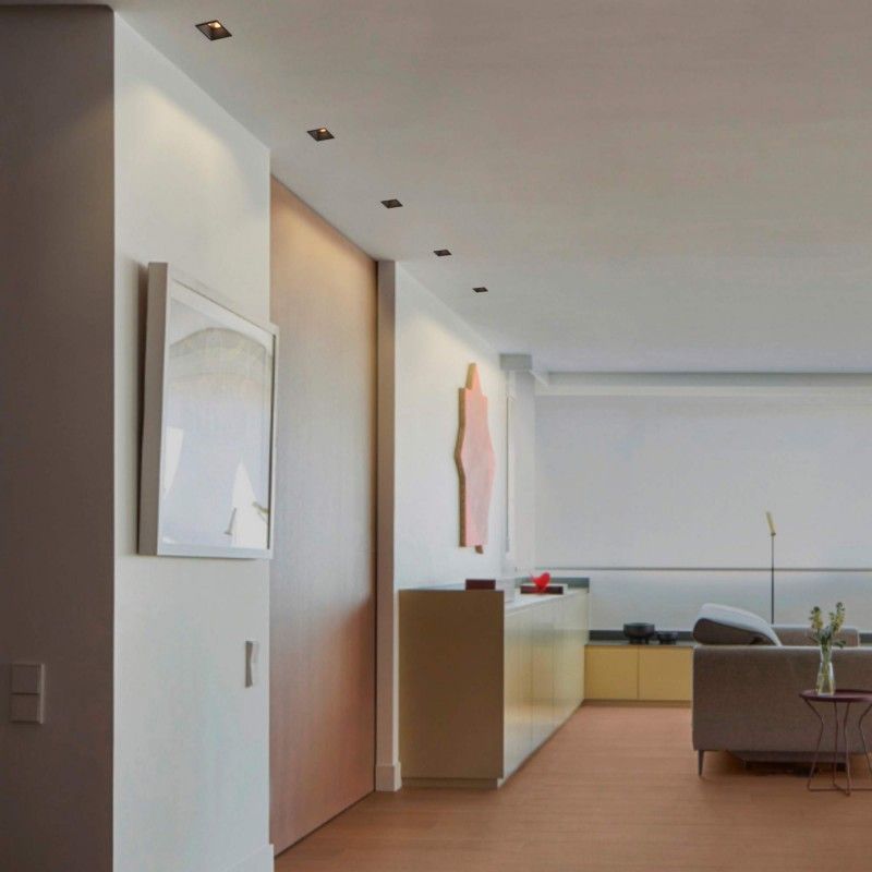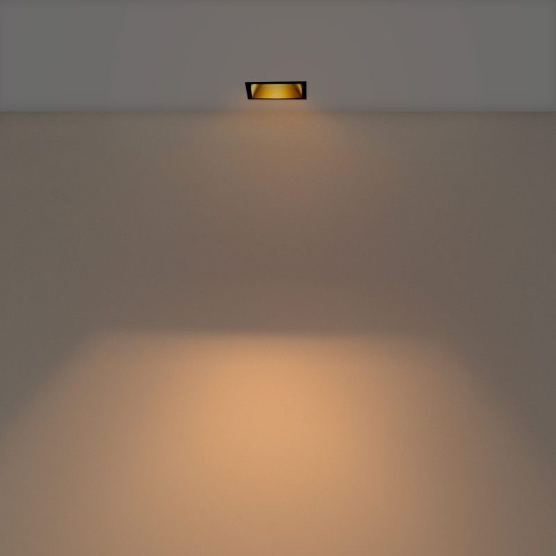 Collerette d'encastrement carrée avec éclairage asymétrique.