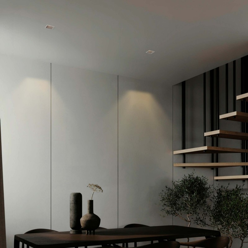Cette collerette d'encastrement inclinée combine un design carré minimaliste et élégant avec une technologie avancée pour ceux qui recherchent un éclairage moderne et fonctionnel.