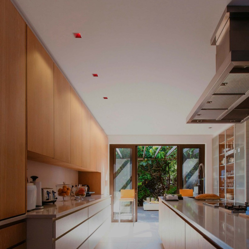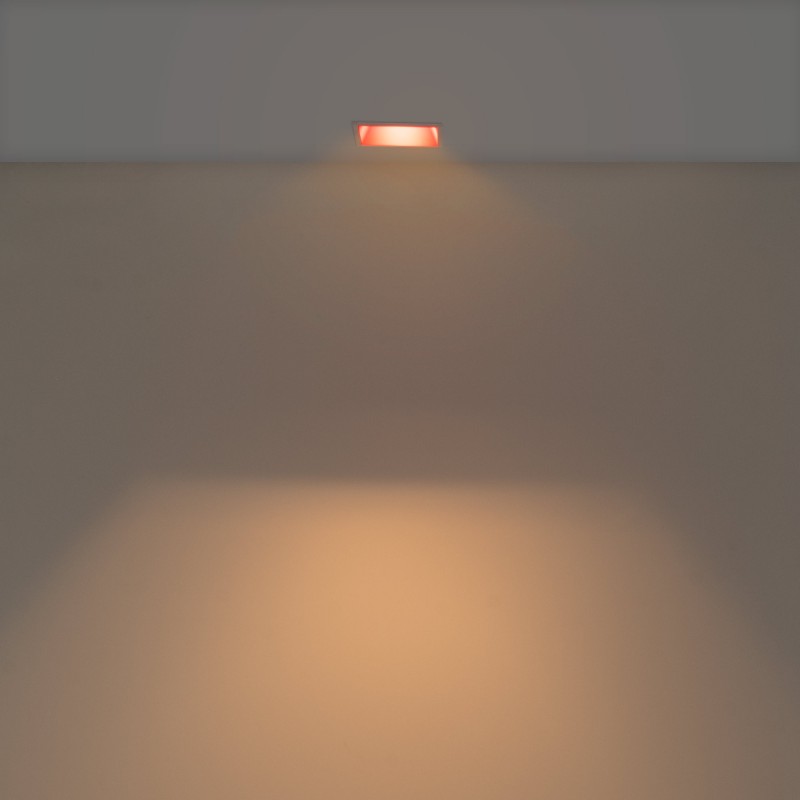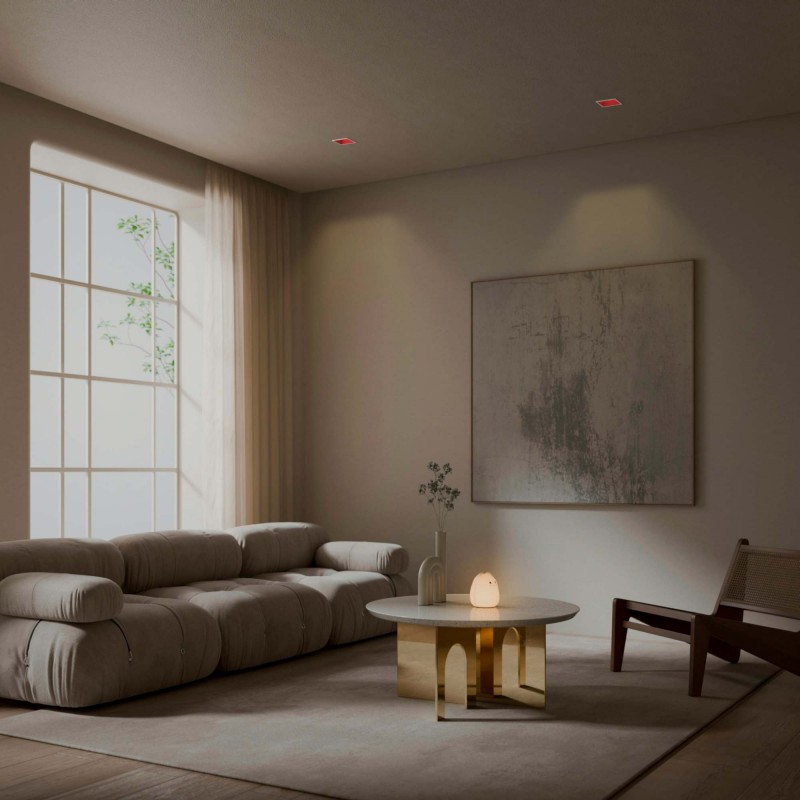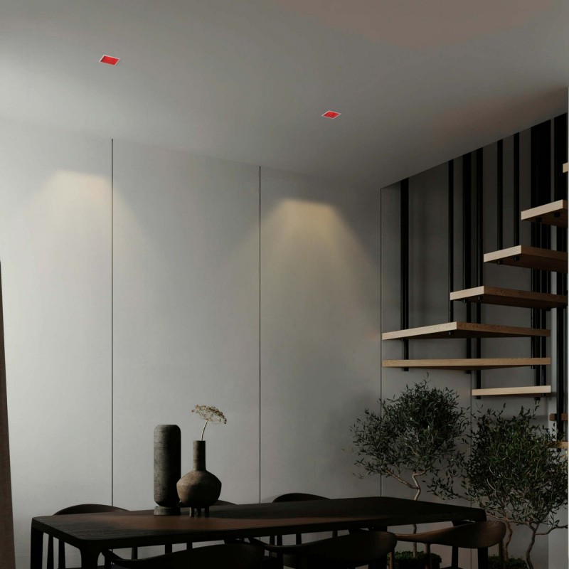 Collerette d'encastrement carrée avec éclairage asymétrique.