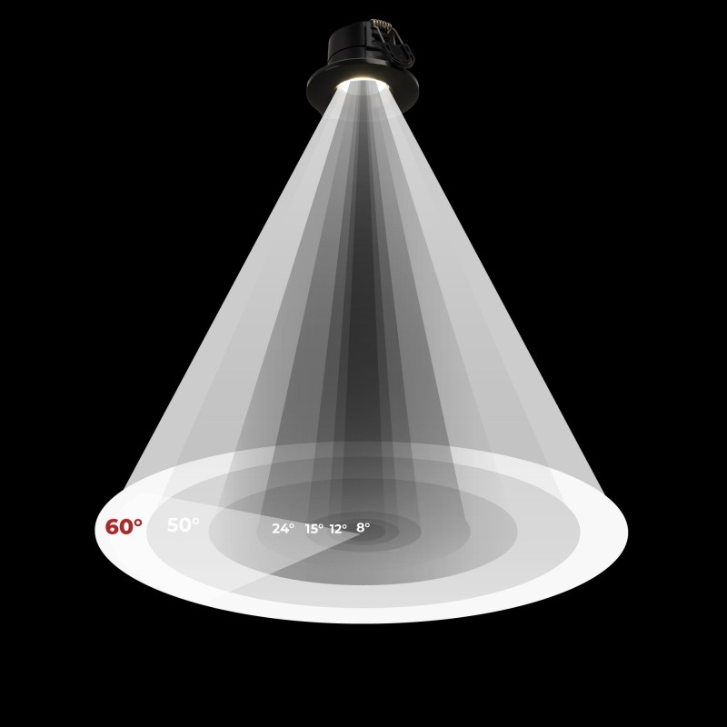 - Angle d'ouverture de 60°: permet un éclairage ciblé, idéal pour mettre en valeur des zones spécifiques sans perdre en couverture.