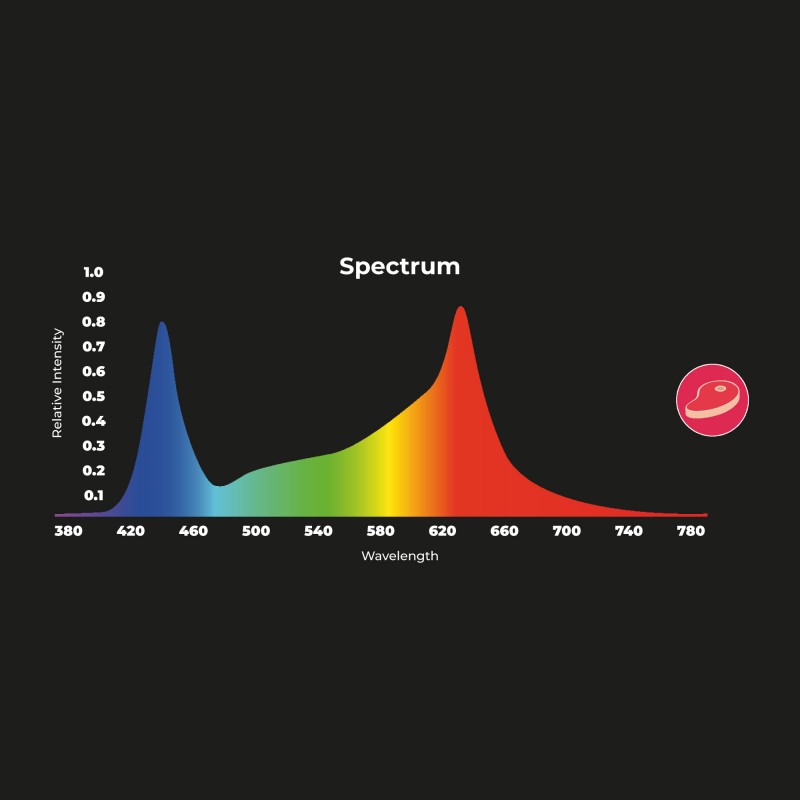 ✔ Sa lumière dans une nuance rosée sublime la couleur naturelle de la viande, la présentant de manière fraîche et appétissante, influençant positivement la perception des clients et favorisant leur décision d'achat.