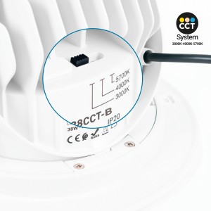 - Système CCT: permet de choisir entre 3000K (blanc chaud), 4000K (blanc neutre) et 5700K (blanc froid) à l'aide d'un interrupteur, adaptant ainsi l'éclairage à l'environnement souhaité.
