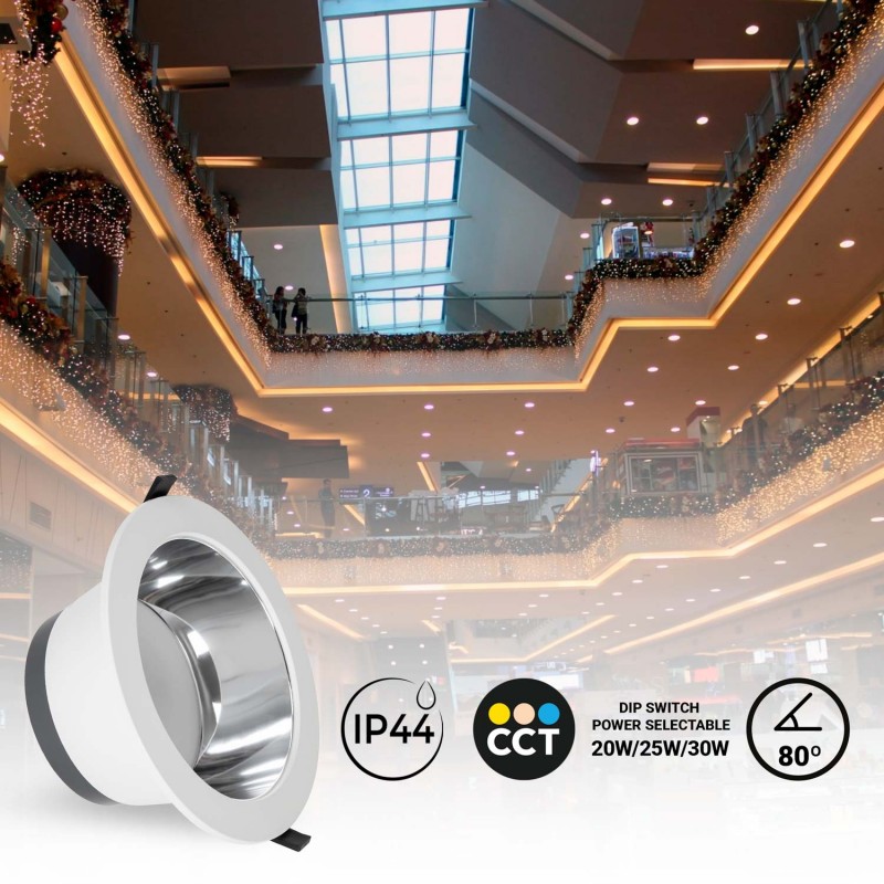 Downlight LED IP44 puissance réglable 20W/25W/30W - CCT - 100lm/W - Coupe Ø 200mm