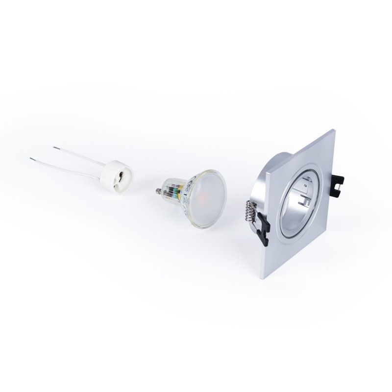 Kit Collerette spot carré 93x93mm (argent) + Ampoule GU10 5,4W + Douille