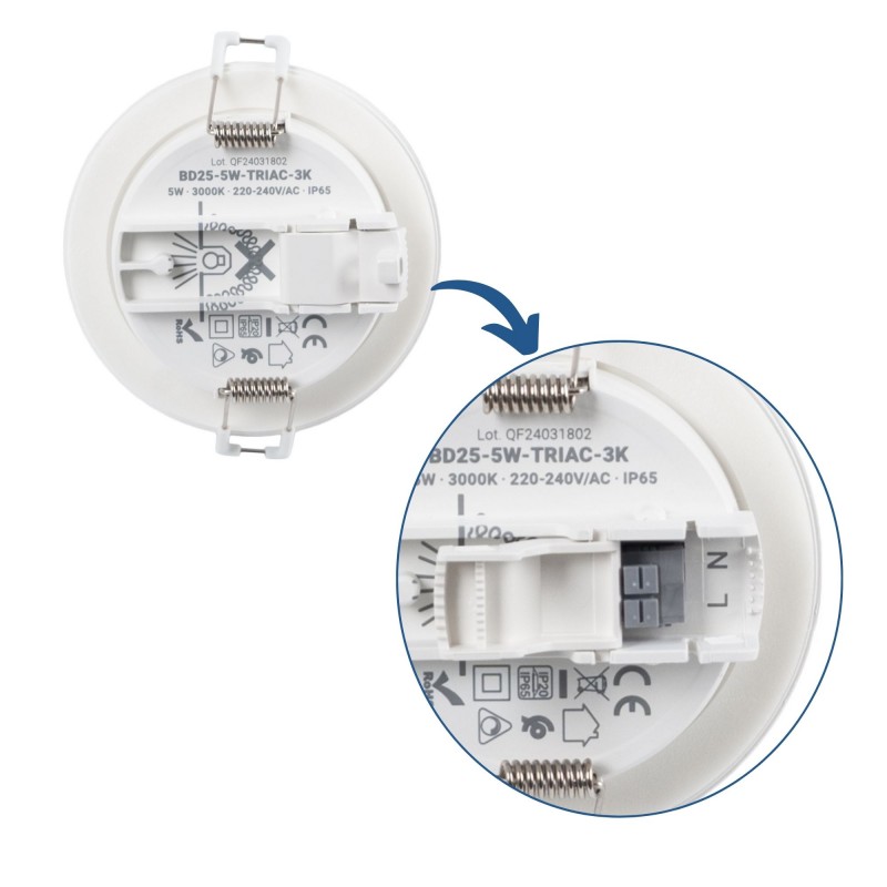 KIT Downlight LED 5W - TRIAC dimmable + anneau de finition - 3000K - IP65