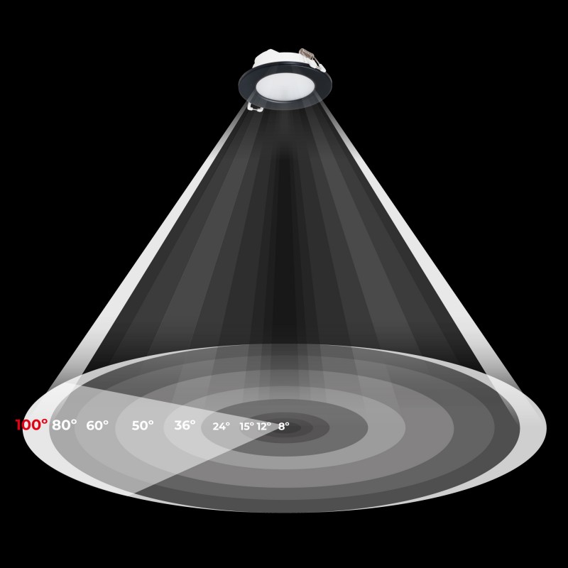 - Grand angle d'ouverture: avec un angle d'ouverture de 100°, il assure une couverture lumineuse large et homogène.