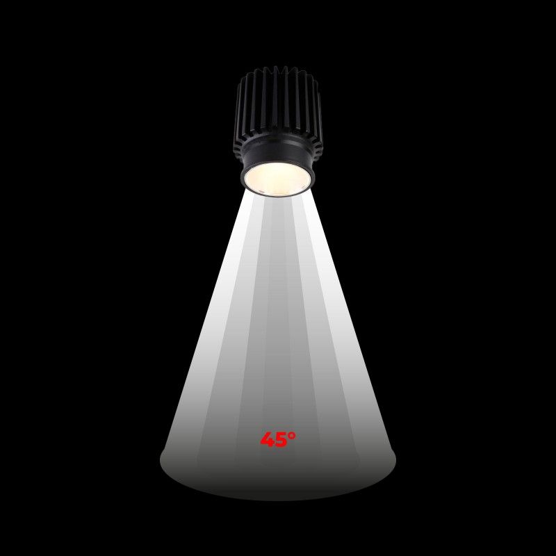 - Éclairage ciblé : avec un angle d'ouverture de 45º, il offre un éclairage ciblé, idéal pour mettre en valeur les vitrines, les étalages ou des zones spécifiques.