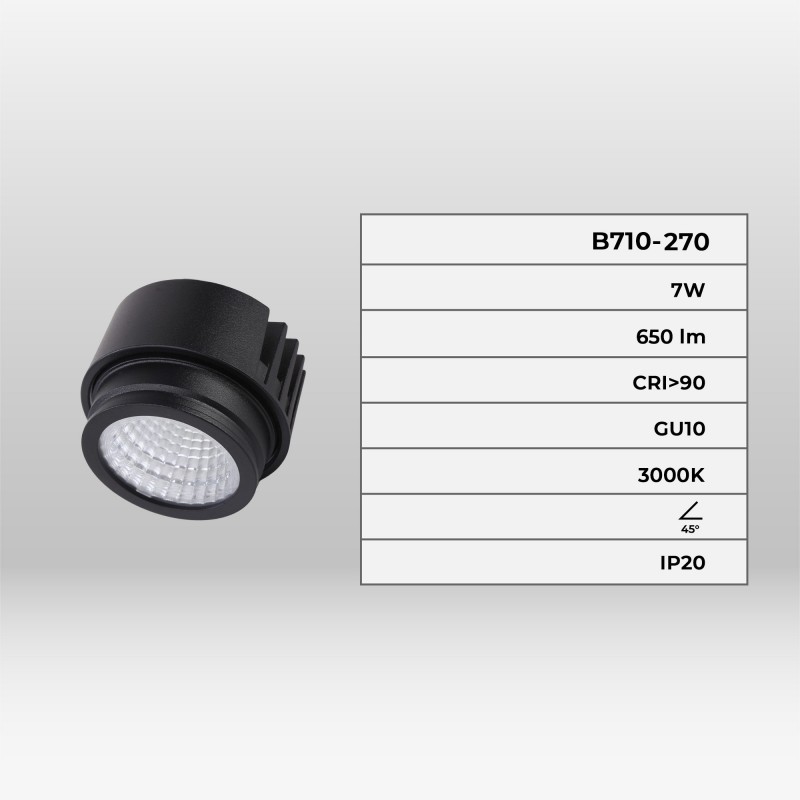 Le module LED se distingue par une remarquable efficacité lumineuse de 84lm/W, avec une puissance de 7W, diffusant une lumière focalisée à un angle de 45°.
