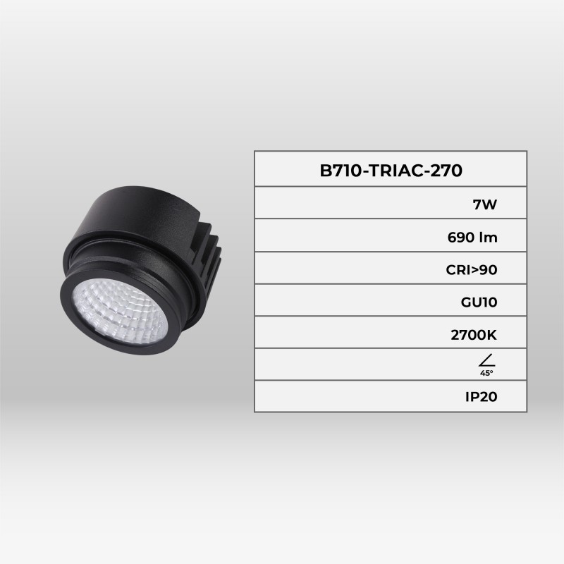 Équipé d'une puce LED Cree de 7W et d'un driver externe, ce module est dimmable par TRIAC, offrant ainsi la flexibilité d'ajuster l'intensité lumineuse en fonction des besoins spécifiques.