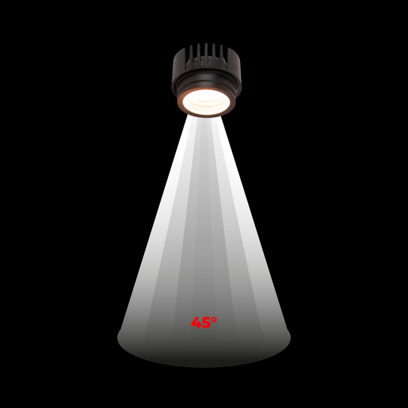 • Éclairage focalisé : Avec un angle d'ouverture de 45º, il offre un éclairage focalisé, idéal pour mettre en valeur des vitrines, des devantures ou des zones spécifiques.