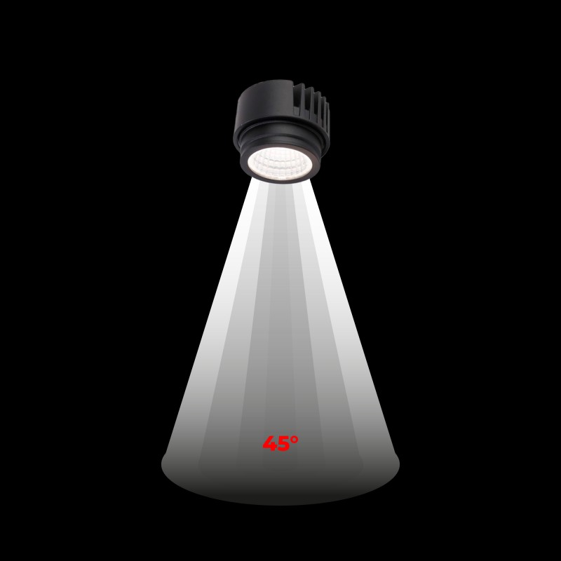 Le module LED se distingue par une remarquable efficacité lumineuse de 84lm/W, avec une puissance de 7W, diffusant une lumière focalisée à un angle de 45°.