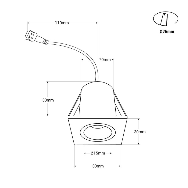 Spot LED encastrable carré 2W - Puce Osram - UGR18 - Coupe Ø 25mm - Blanc