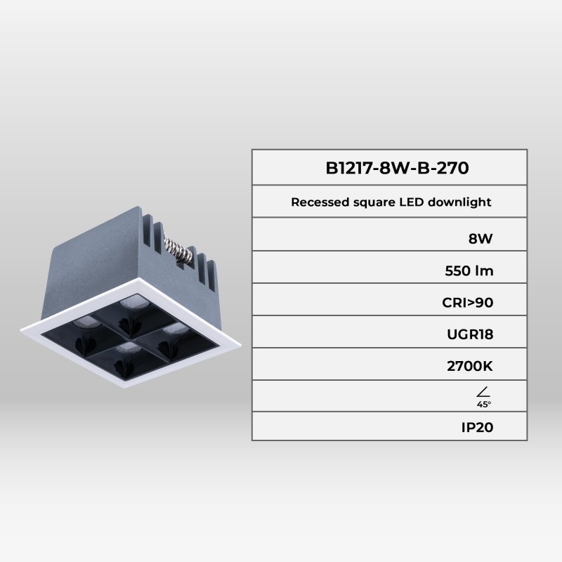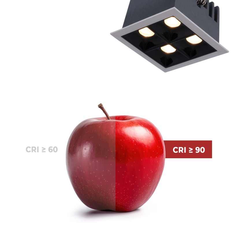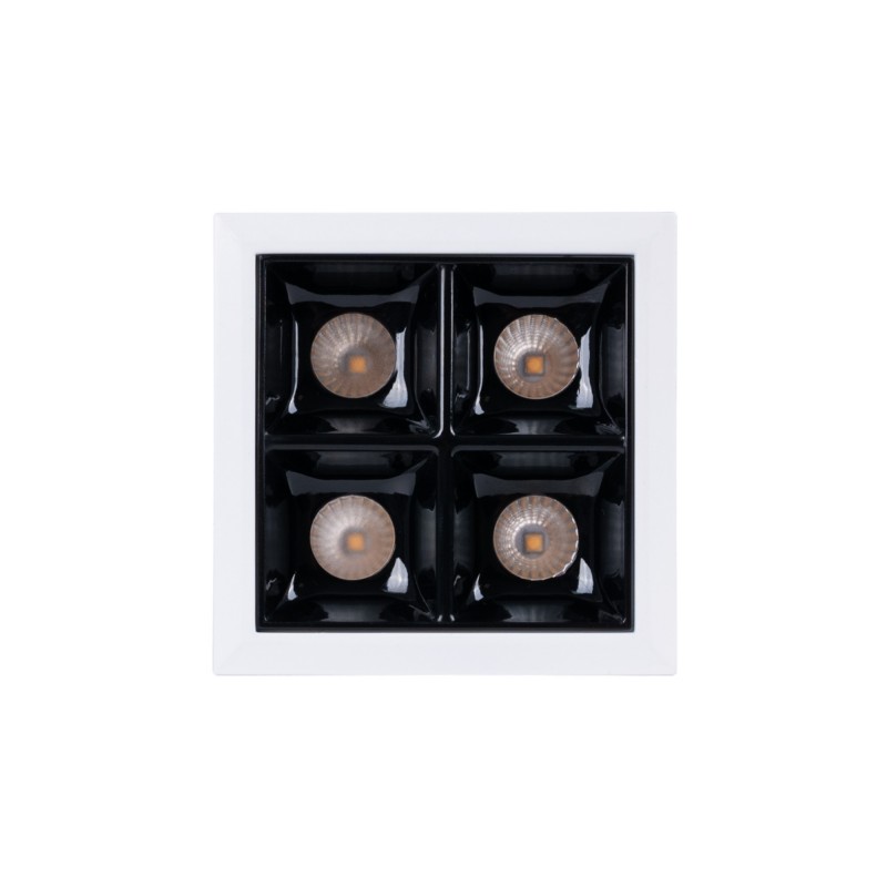 Spot LED encastrable carré 8W - 4 lumières - UGR18 - IRC90 - Puce OSRAM - Blanc