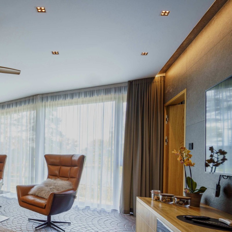 Sa conception se distingue par un indice d'éblouissement exceptionnellement bas (UGR<18) et un indice de rendu des couleurs élevé (IRC>90), offrant un grand confort visuel tout en permettant de restituer les couleurs avec une grande fidélité, semblable à la lumière naturelle.