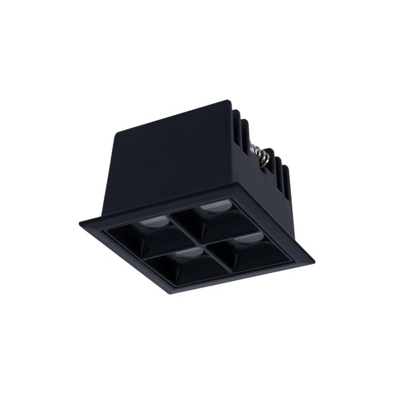 Spot LED encastrable carré 8W - 4 lumières - UGR18 - IRC90 - Puce OSRAM - Noir