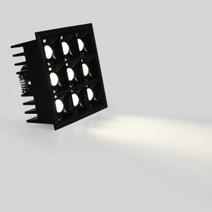 Spot LED encastrable carré 18W - 9 lumières - UGR18 - IRC90 - Puce OSRAM - Noir