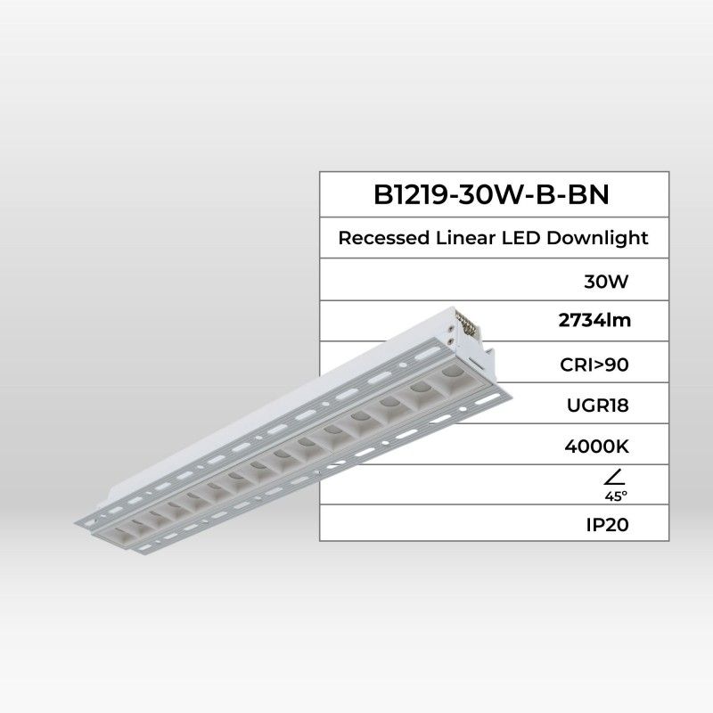Spot linéaire LED trimless / intégration - 30W - UGR18 - IRC90 - Blanc