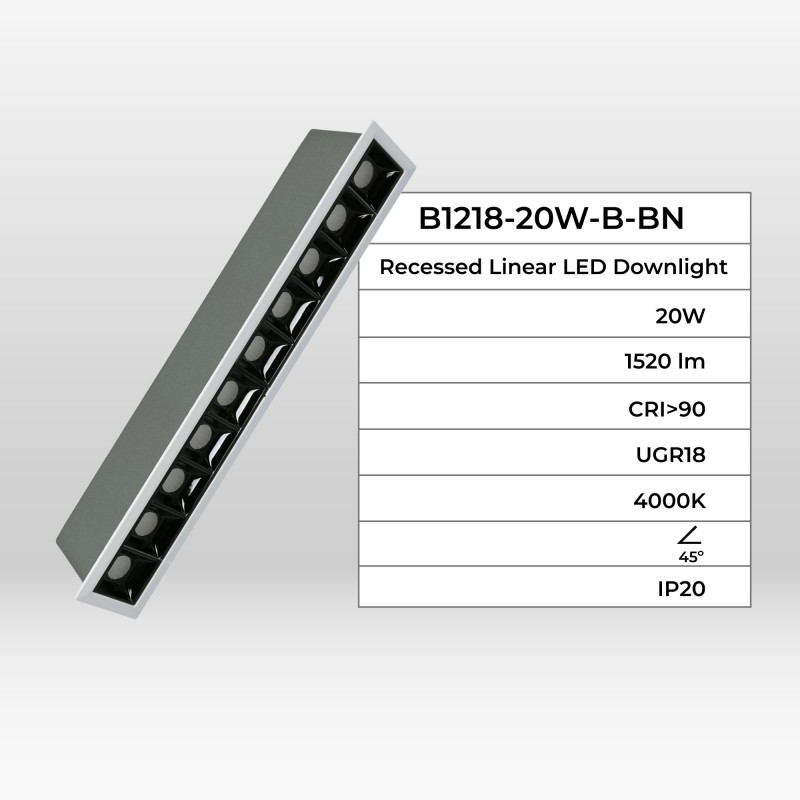 Spot linéaire LED encastré 20W - UGR18 - IRC90 - Puce OSRAM - Blanc
