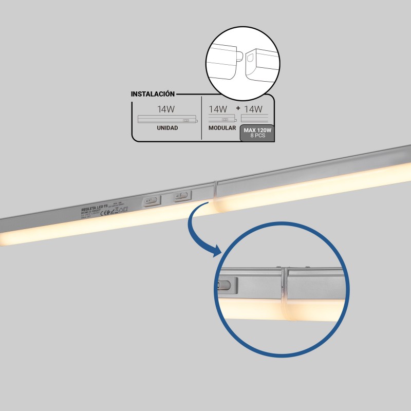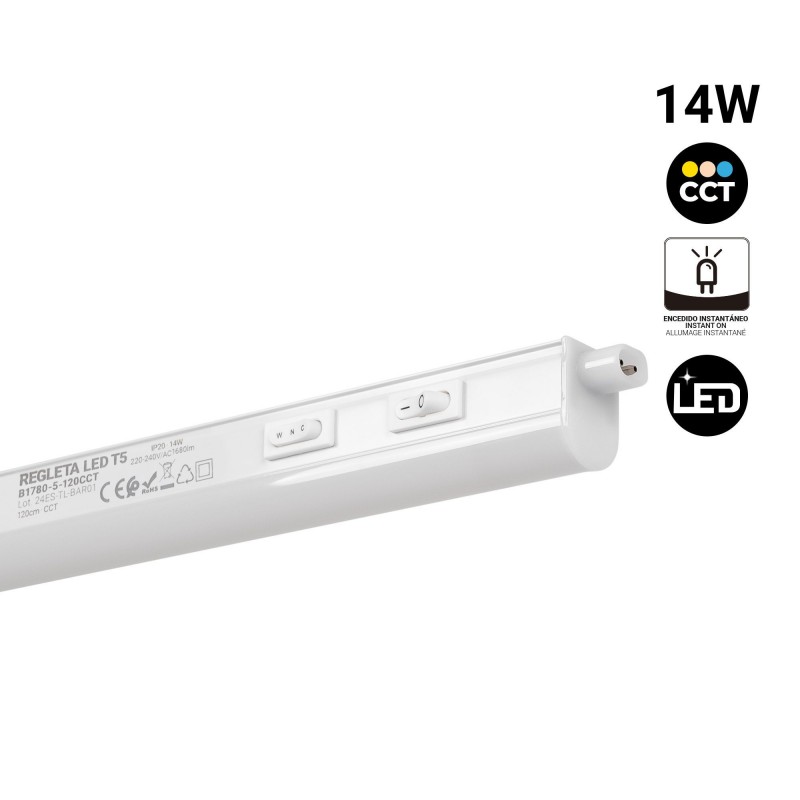 La réglette T5 120 cm 14W LED sous armoire est conçue pour maximiser la luminosité et les économies d'énergie dans les espaces intérieurs. Grâce à son diffuseur opale et à son angle d'ouverture de 130°, elle fournit une lumière uniforme et non éblouissante, idéale pour les environnements de travail ou de décoration.