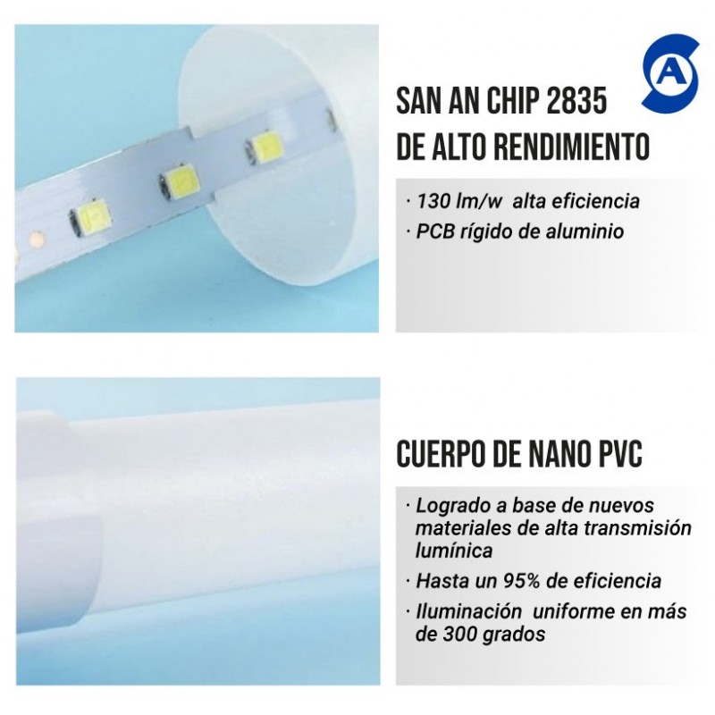 Avec un angle d'ouverture du faisceau de 330º, ce tube LED en nano plastique peut être installé dans n'importe quel luminaire ou réglette, offrant une flexibilité optimale d'utilisation.